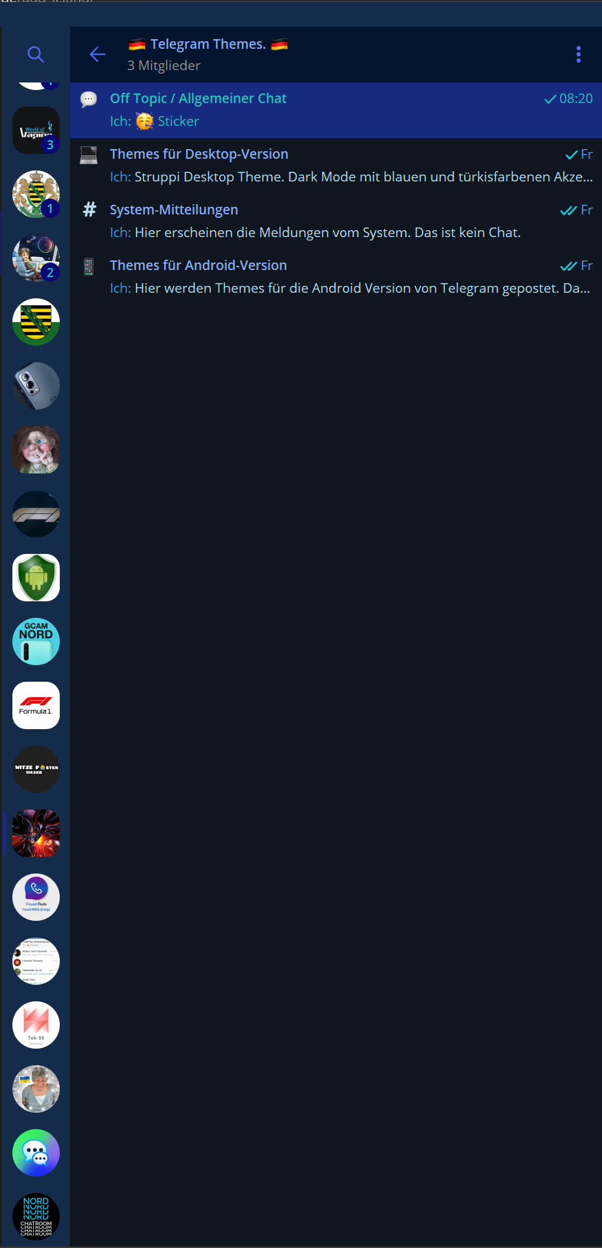 In dieser Gruppe könnt ihr Thenes für Telegram, Android und Desktop Version, teilen. Einen Chat für die gepflegte Unterhaltung gibt es auch.